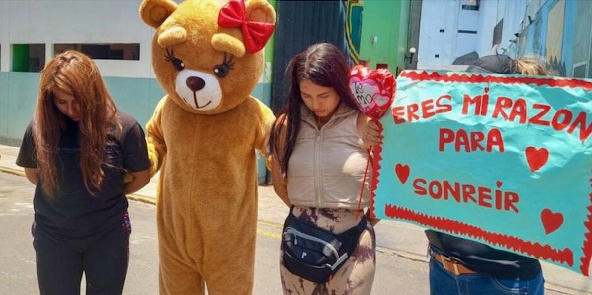 The officers "disguised themselves using the teddy bear because drugs were sold there," Colonel Walter Palomino, head of the Green Squadron of the National Police, told AFP.