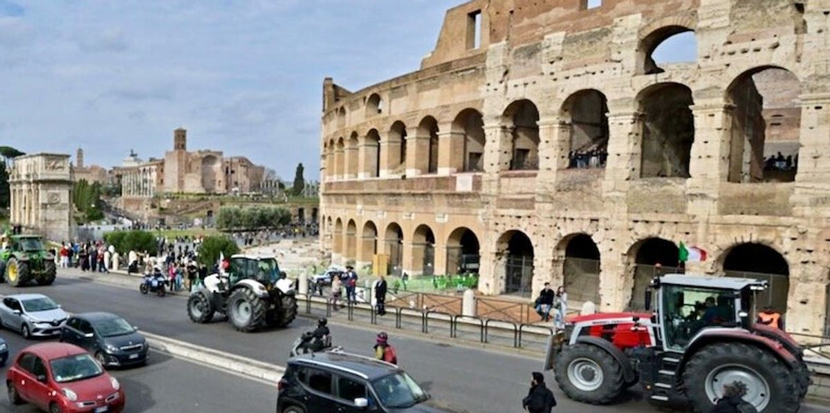 Earlier Friday, the protests reached the centre of Rome, with tractors -- including one green, one white and one red, Italy's national colours -- taking a symbolic drive past the Colosseum.
