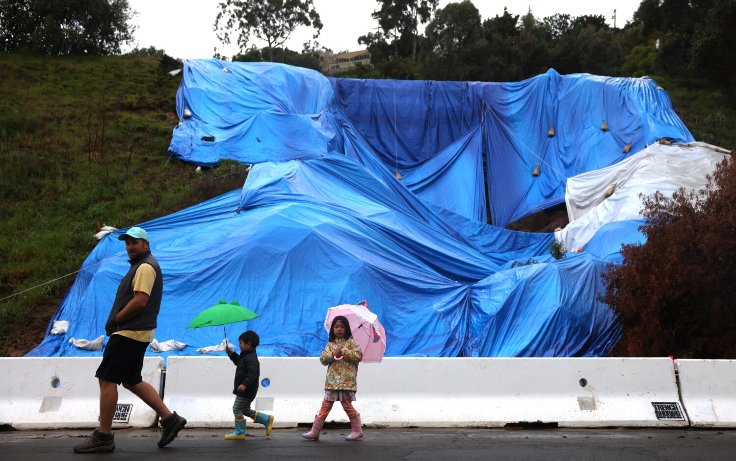 A late-season storm has brought as much as 2 inches of rain in the L.A. area, flooding on freeways and a rare tornado warning in Santa Barbara County.