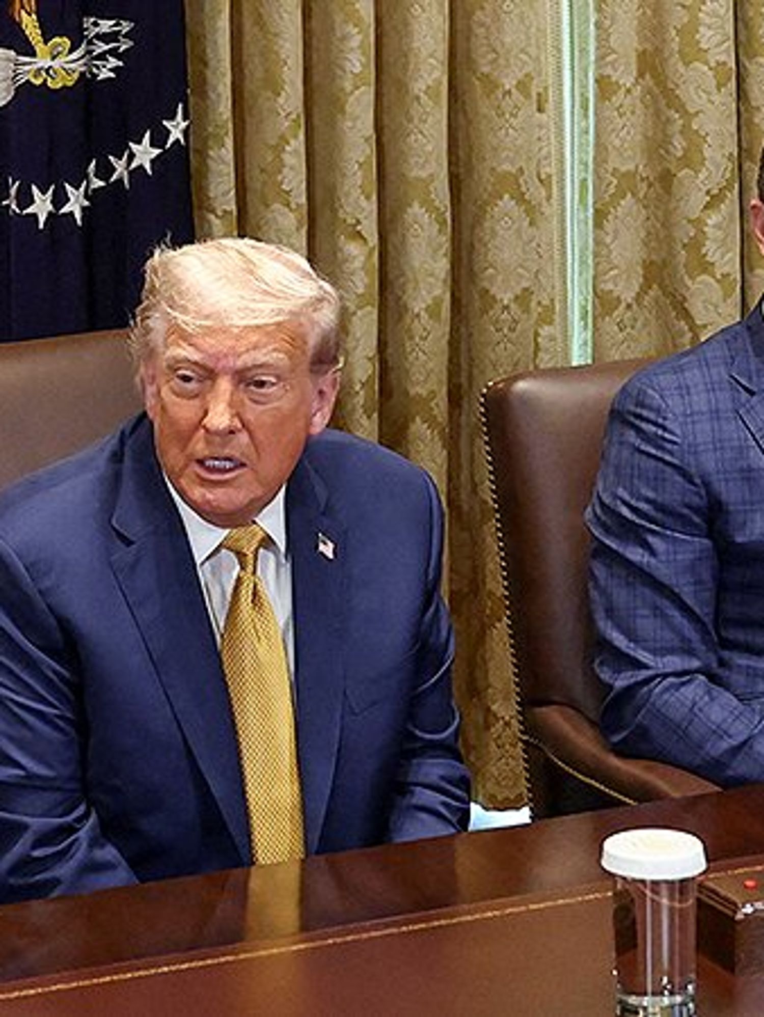"What do you know about this, Pete?" Trump asked, leaning over to Hegseth.